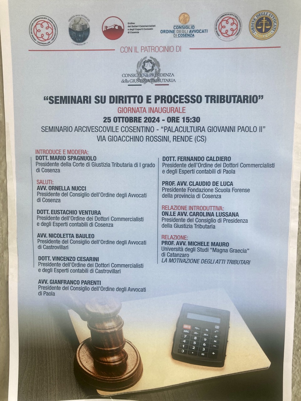 - Corte di Giustizia Tributaria di I grado di Cosenza, con il patrocinio del Consiglio di Presidenza della Giustizia Tributaria;